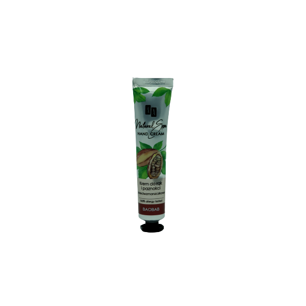 Krem do rąk i paznokci baoab natychmiast naprawia i daje ulgę zniszczonej i spierzchniętej skórze dłoni, która staje się odżywiona i zregenerowana. AA Natural SPA to linia wyjątkowych kosmetyków bogatych w naturalne, roślinne składniki, które odżywią i poprawią kondycję skóry w zgodzie z naturą. Regenerujący olejek z baobabu łagodzi i chroni skórę dłoni. Witaminy A, E i D opóźniają proces starzenia się skóry, zapewniając jej aksamitną gładkość i elastyczność. Krem szybko się wchłania, nie pozostawiając uczucia lepkości.