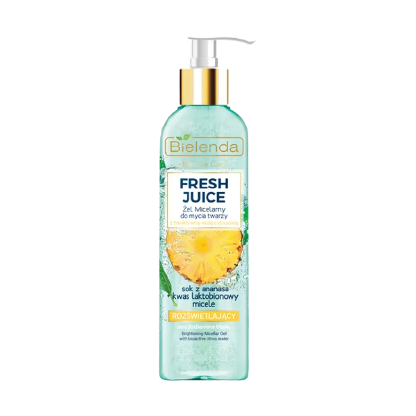 Bielenda Żel Micelarny do mycia twarzy z BIOAKTYWNĄ WODĄ CYTRUSOWĄ zawiera rozświetlający SOK Z ANANASA, regenerujący KWAS LAKTOBIONOWY oraz oczyszczające MICELE.