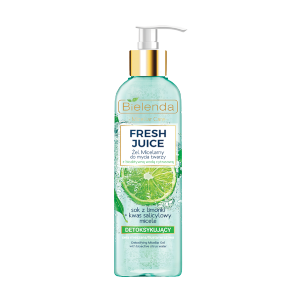 Bielenda Żel Micelarny do mycia twarzy z BIOAKTYWNĄ WODĄ CYTRUSOWĄ zawiera detoksykujący SOK Z LIMONKI, antybakteryjny KWAS SALICYLOWY oraz oczyszczające MICELE.