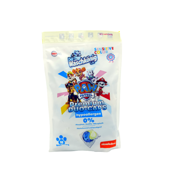 Absolutna nowość! Oryginalne, niemieckie kapsułki do prania Der Waschkönig C.G. Sensitive sygnowane popularną marką Psi Patrol oraz uwielbianymi przez wszystkich pieskami! Kapsułki dzięki dwukomorowej budowie i samorozpuszczalnej foli doskonale rozpuszczają się w wodzie i gwarantują dokładne dozowanie detergentu.