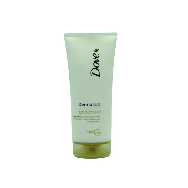 Dove Derma Spa Goodness Balsam do ciała nadający skórze miękkość, jedwabistą gładkość i promienny blask. Szybko wchłaniający się balsam do ciała. Dzięki połączeniu olejku oraz technologii Cell-Moisturisers przywraca suchej skórze blask oraz jedwabistą gładkość. Aksamitna konsystencja otula ciało, dając uczucie SPA każdego dnia. Produkt błyskawicznie przywraca odpowiedni poziom nawilżenia suchej skórze. Gwarantuje efekt świetlistej, gładkiej i aksamitnie miękkiej skóry.