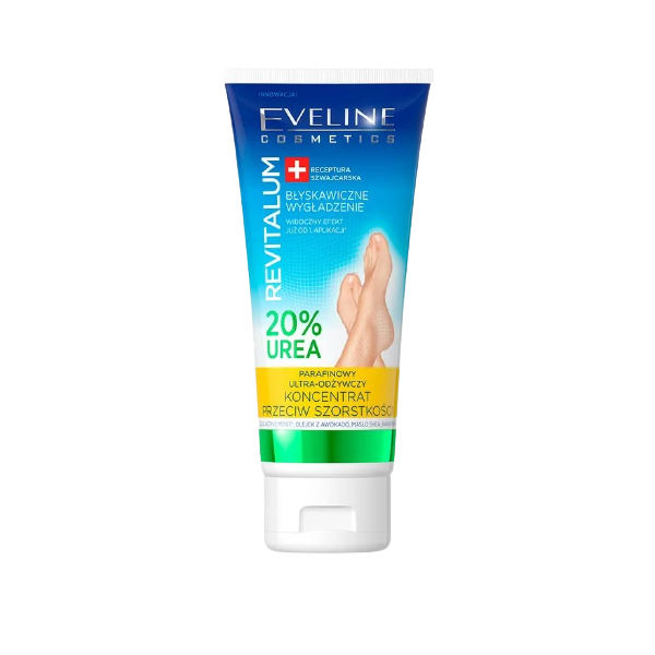 Eveline Revitalum Parafinowy koncentrat do stóp przeciw szorstkości z 20% zawartością UREA i parafiną zapewnia suchej i szorstkiej skórze stóp intensywne wygładzenie, doskonałe nawilżenie i skuteczne zmiękczenie naskórka.