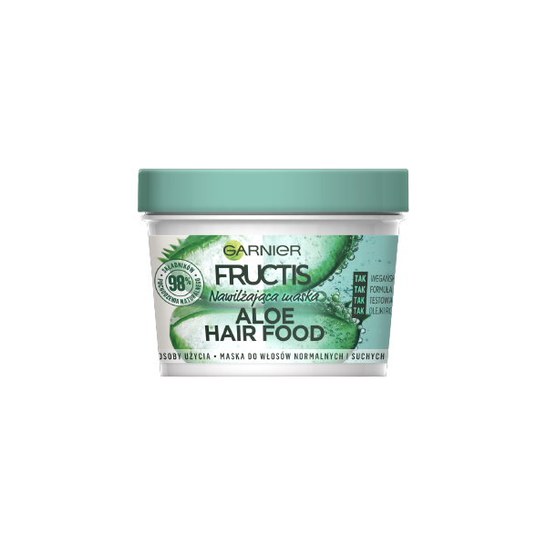 Nawilżająca maska do włosów suchych i normalnych Aloe Hair Food od Garnier Fructis wzbogacona o ekstrakt z aloesu i kokos, sprawia, że stają się miękkie, sprężyste, błyszczące i idealnie nawilżone.