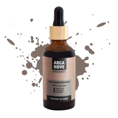 Olej z orzechów makadamia Arganove nie zawiera sztucznych barwników, konserwantów ani perfum. Po otwarciu należy przechowywać w lodówce. Szklana butelka zakończona jest pipetą, która ułatwia aplikację produktu.