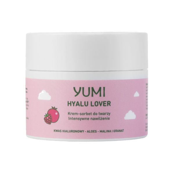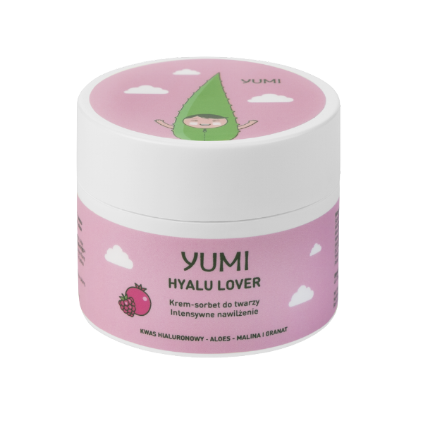 Yumi Hyalu Lover to kompleksowe połączenie: kwasu hialuronowego, aloesu oraz olejów: sojowego, z pestek malin oraz masła shea.