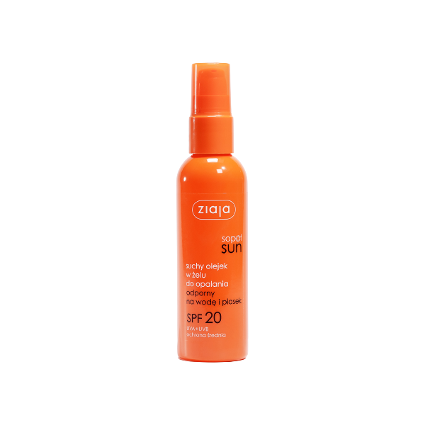 Wodoodporny, suchy olejek SPF 20 o szerokim spektrum ochrony UVA i UVB. Ma konsystencję lekkiego żelu, wygodnie się rozprowadza i nie pozostawia lepkiej warstwy na skórze.